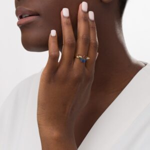 Crafted in warm 10K gold, this split-pronged ring features a subtle bypass design with a curved polished and diamond-lined ribbon. Featuring 1/8 carat diamonds with a dazzling polished luster, this ring is uniquely yours.