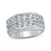 This distinctive men's wedding band features two rows of bold round diamonds. The ring is fashioned in 10K white gold and has an impressive total diamond weight of 2 carats.
