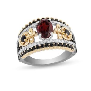 Oval Garnet and 1 CT. T.W. Diamond Ring in Two-Tone Sterling Silver and 10K Gold